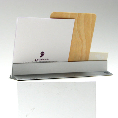 The cardbar is a desktop organizer and tool. designed to hold and display cards and other graphic ephemera, it is easy to handle, has a safe edge for cutting and, for good measure, a ruler (no ruler on the small size). made of new and recycled aluminum and anodized for a durable finish, it is 100% recyclable and padded with a nonslip microsuede base.